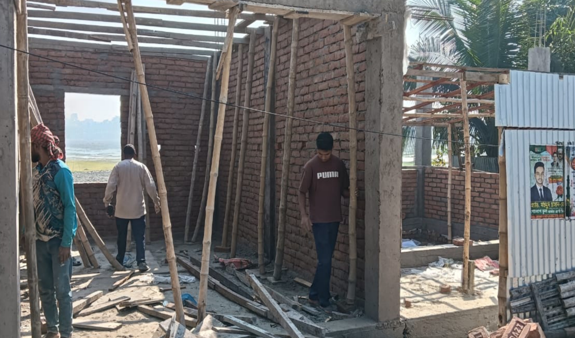 গতকাল শুক্রবার সরেজমিন ঘটনাস্থলে গিয়ে দেখা গেছে মো: খায়ের সরকারি জায়গায় পাকা স্থাপনা দোকান ঘর নির্মাণ কাজের তদারকি করছেন। তাকে জিজ্ঞাসাবাদ করা হলে তিনি তার জামাতা নাজমুলের সাথে মোবাইল ফোনে কথা বলার অনুরোধ করেন। নাজমুলের সাথে মোবাইল ফোনে কথা বললে তিনি বলেন, "জেলা ছাত্রলীগের (নিষিদ্ধ সংগঠন) একজন সহসভাপতি মিকাইলের লোক আমরা।
