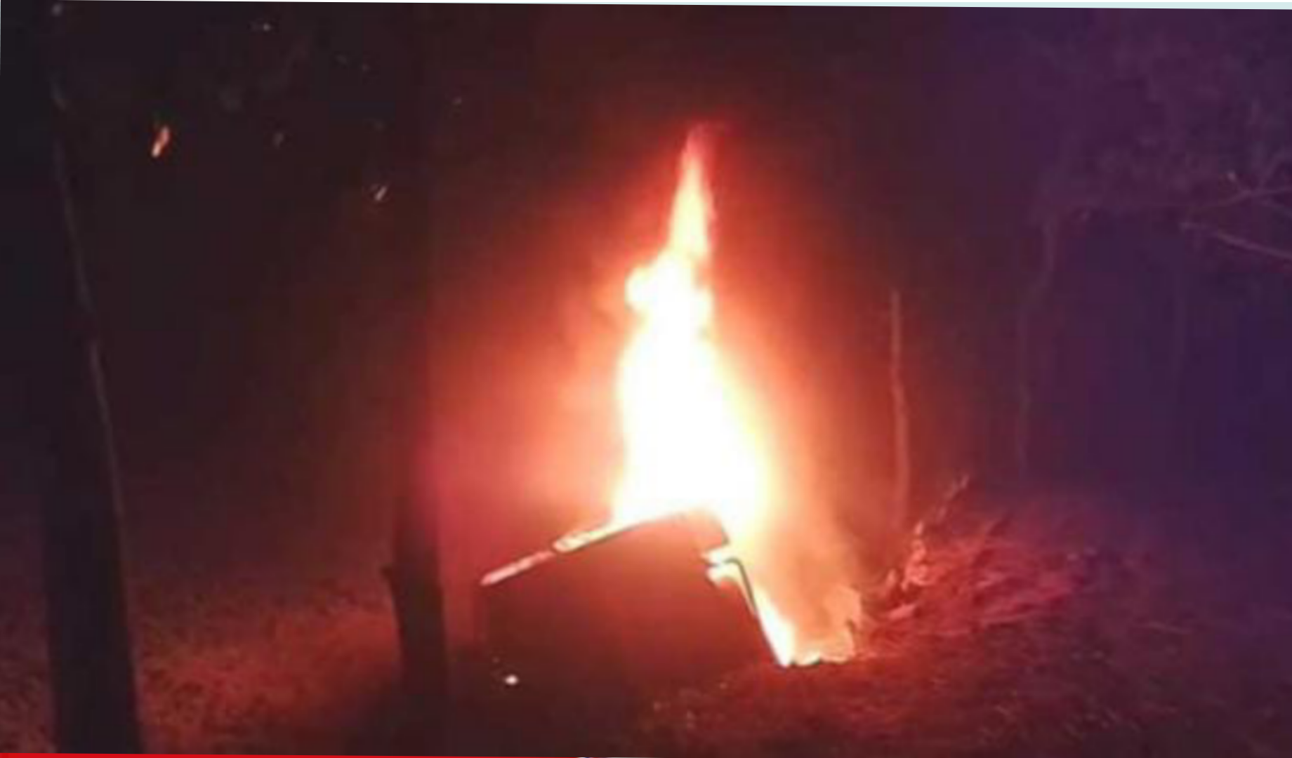 গ্রামবাসীর ধাওয়া খেয়ে গাড়িটি নিয়ন্ত্রণ হারিয়ে রাস্তার পাশে খাদে পড়ে ইঞ্জিন বিস্ফোরণ থেকে আগুন লেগে যায় বলে ধারণা করছে পুলিশ।