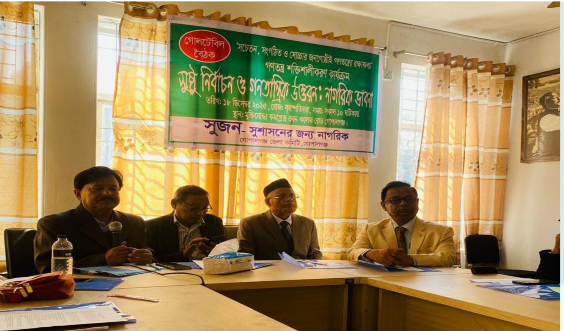 গোপালগঞ্জে সুষ্ঠু নির্বাচন ও গণতান্ত্রিক উত্তরণে নাগরিক ভাবনা বিষয়ে এক গোলটেবিল বৈঠক অনুষ্ঠিত হয়েছে।