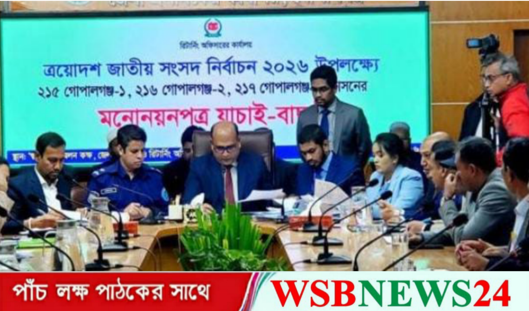 আসন্ন ত্রয়োদশ জাতীয় সংসদ নির্বাচনে গোপালগঞ্জ জেলার তিনটি সংসদীয় আসনে দাখিল করা প্রার্থীদের মনোনয়নপত্রের যাচাই-বাছাই কার্যক্রম সম্পন্ন হয়েছে। মোট ৩৮ জন প্রার্থীর মধ্যে ১২ জনের মনোনয়ন বাতিল ঘোষণা করা হয়েছে। পাশাপাশি ২ জন প্রার্থীর মনোনয়ন স্থগিত রাখা হয়েছে।