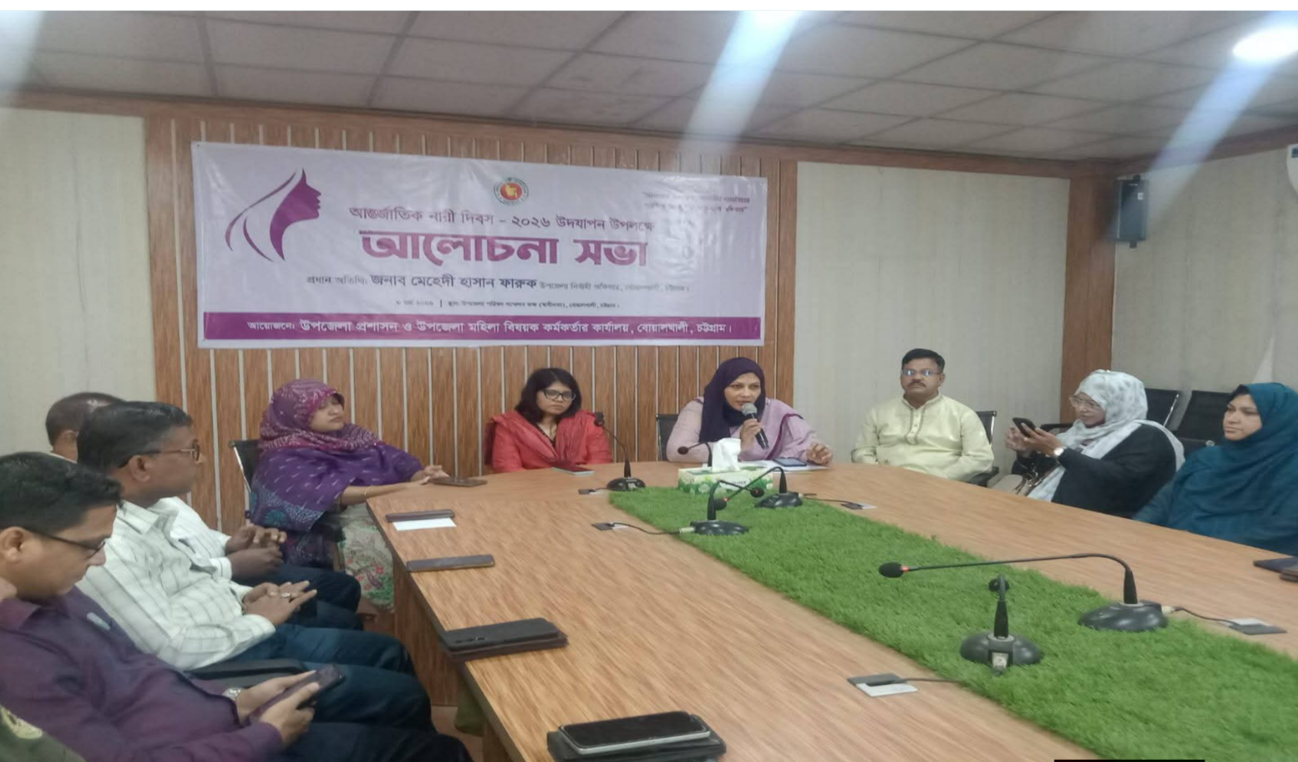 বোয়ালখালী উপজেলা পরিষদ সম্মেলন কক্ষে আন্তর্জাতিক নারী দিবস ২০২৬ উদযাপন উপলক্ষে এক আলোচনা সভা উপজেলা মহিলা বিষয়ক কর্মকর্তা সোনিয়া সফির সভাপতিত্বে অনুষ্ঠিত হয়।