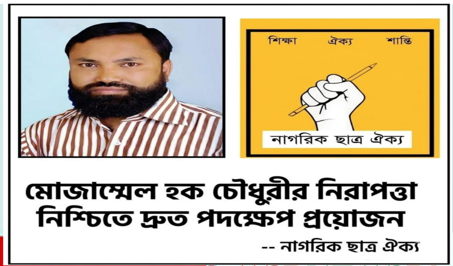 মোঃ মোজাম্মেল হক চৌধুরীর জীবনের পূর্ণ নিরাপত্তা নিশ্চিত করতে হবে