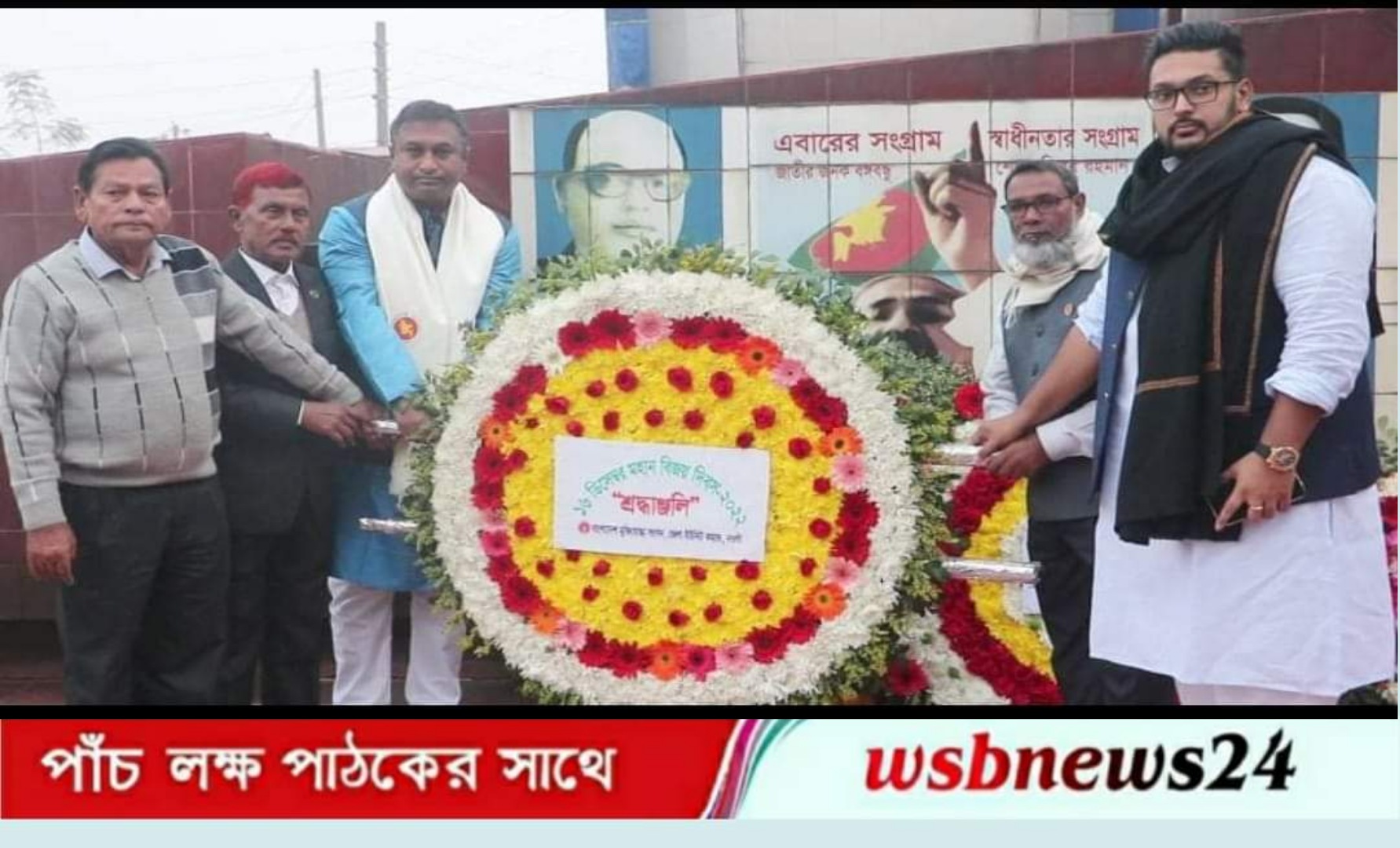 শুক্রবার (১৬ ডিসেম্বর) সূর্যদয়ের সাথে সাথে শহরের মশরপুর বাইপাস মোড়ে মুক্তিযুদ্ধের বিজয় স্তম্ভে ফুল দিয়ে শ্রদ্ধা জানানোর মধ্যে দিয়ে দিবসের কর্মসূচী শুরু হয়।