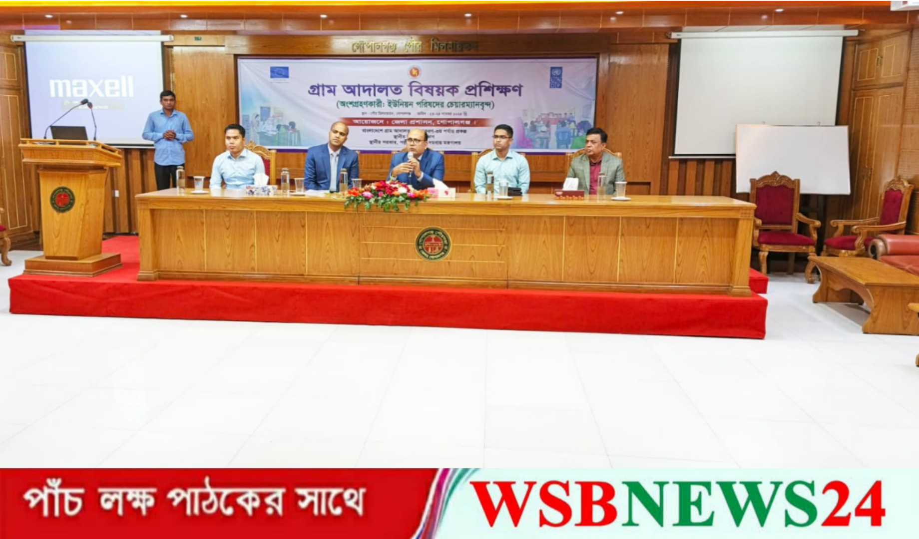 গোপালগঞ্জ জেলায় পৌর মিলনায়তনে ইউনিয়ন পরিষদের চেয়ারম্যানদের নিয়ে ২ দিন ব্যাপি গ্রাম আদালত বিষয়ক প্রশিক্ষণ অনুষ্ঠিত হয়েছে। জেলা প্রশাসনের আয়োজনে ও বাংলাদেশে গ্রাম আদালত সক্রিয়করণ ৩য় পর্যায় প্রকল্প, স্থানীয় সরকার বিভাগ, স্থানীয় সরকার , পল্লী উন্নয়ন ও সমবায় মন্ত্রণালয়, ইউএনডিপি ও ইউরোপীয় ইউনিয়ন এর আর্থিক ও কারিগরি সহযোগিতায় এ প্রশিক্ষণ অনুষ্ঠিত হয়।