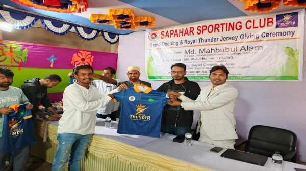 সাপাহারে ‘রয়্যাল থান্ডার’ টিমের গ্র্যান্ড ওপেনিং ও জার্সি উন্মোচন