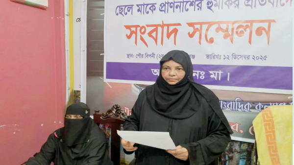 সৎ ছেলে কর্তৃক মাকে প্রাণে হত্যার হুমকির প্রতিবাদে ও ন্যায় বিচারের দাবীতে সুনামগঞ্জে সংবাদ সম্মেলন